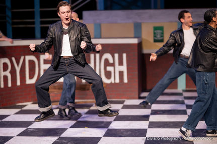 I was so pleased to be welcomed by this summerstock again, and this season the production manager approached it in the true nature of this type of theater - designing based off of a "superstructure" used for every show. The space is a mix of a gym and cafeteria vibe, with furniture pulled in to differentiate the locations. Underneath the main platform I created a sliding wall that would allow for Grease Lightning to enter in its beautiful and rusty glory.