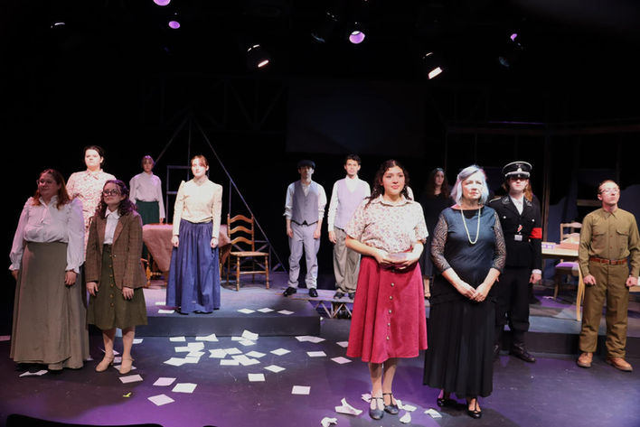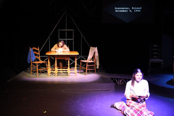 I returned to my alma mater as a staff assistant technical director, scenic designer, and charge, working on Letters to Sala, a powerful play based on the memoir of Arwa Al-Mujahed, which chronicles her Jewish grandmother’s survival during the Holocaust. Through a series of letters and stories, the play tells the journey of Sala, from Poland to Yemen, exploring profound themes of survival, identity, and family. The scenic design takes an abstract approach: on stage right, a frame represents Sala’s home in 1940s Poland, while stage left depicts a New York City apartment in the early 2000s. The "past" side of the stage features a muted color palette with brown wood grains and dry-brushed blue tones, evoking a somber and historical atmosphere. In contrast, the "contemporary" side uses more vibrant, colorful dry-brush techniques, symbolizing a lighter, more hopeful period.